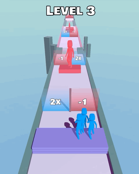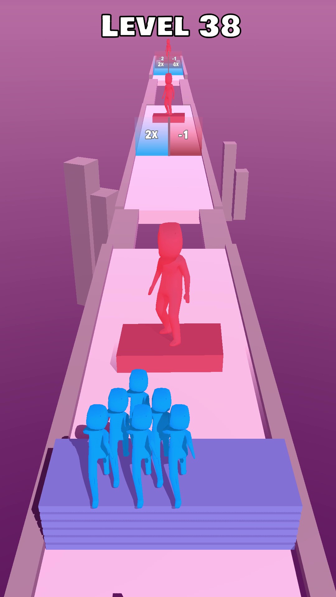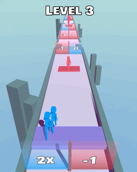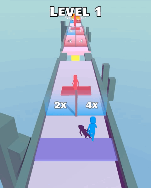 It is a runner-type, mobile hyper-casual game created by Unity. It is tested by Voodoo. You need to pass through from the correct multipliers to increase your stacks, allowing you to get stronger. By using your stack power, push your enemy and beat the game!